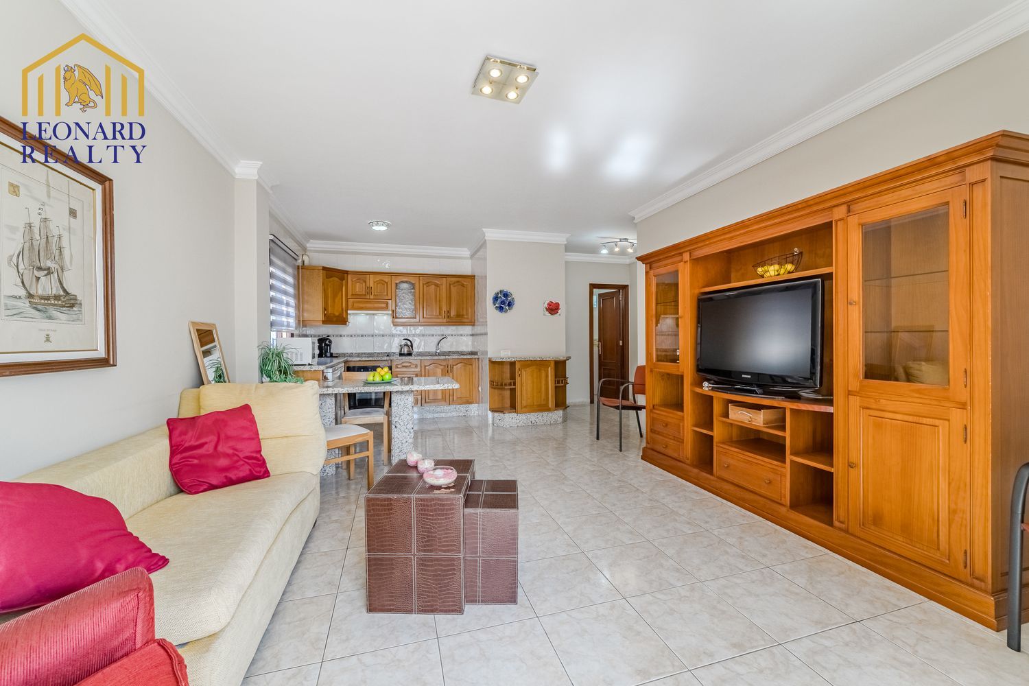 The bright living-dining room connects to a modern open-plan kitchen, creating an ideal atmosphere for sharing unforgettable moments.